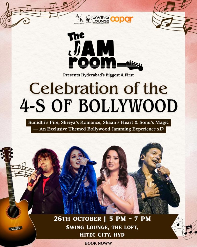 🎤 THE JAM ROOM presents✨ The Celebration of the 4S of Bollywood ✨A Jamming Evening dedicated to Shreya, Sunidhi, Shaan & Sonu Nigam ❤🎶 Four voices that defined an era –their songs, our stories đź’«From romance to rhythm, from fire to heart – let’s jam & relive the magic of Bollywood’s golden voices once again […]